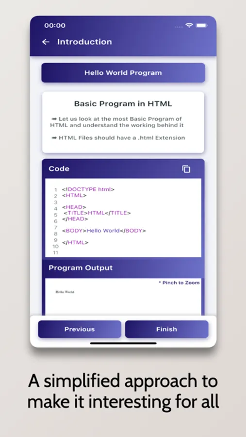 Whether you want to learn HTML Programming as a Hobby, for School/College, or want to build a Career in the field, this Tutorial is for you. The tutorial covers everything from the Basics of Programming to Advanced Concepts. It also comes with a sleek and interactive graphical user interface.