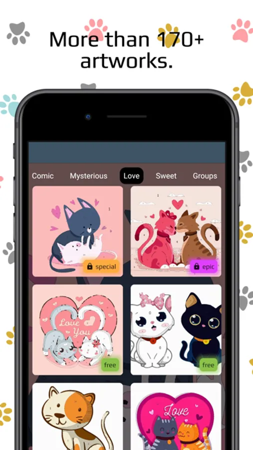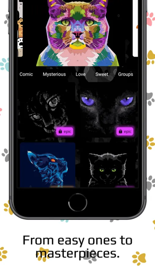 Explore categories like Abstract, Mystical, Love and many more in our app. Share your masterpieces with friends and family, enjoy painting by numbers together!