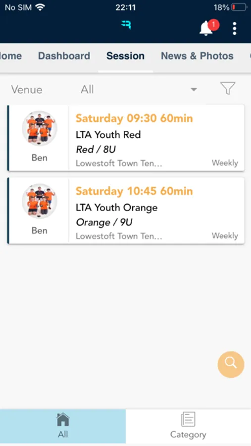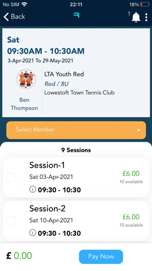 Our own branded app to facilitate booking on to our coaching programmes for 4 year olds to Adults of all levels - Schools, Club and Holiday programmes