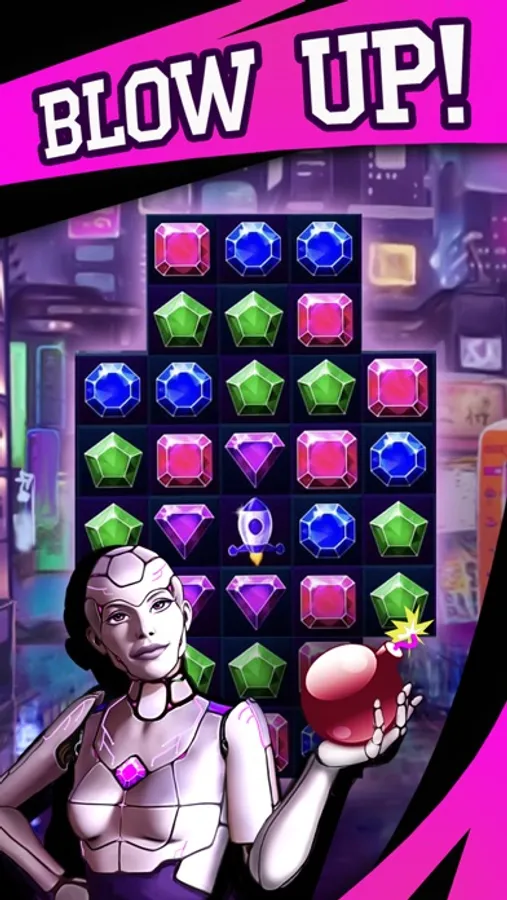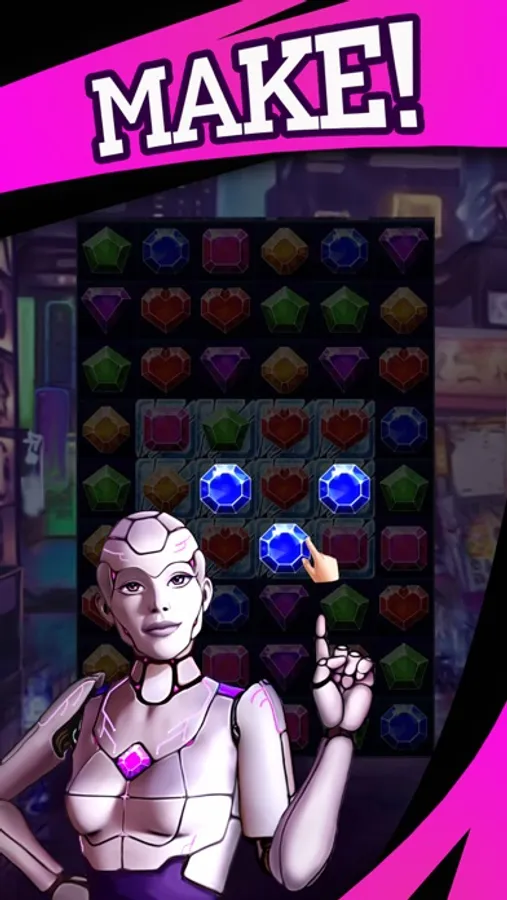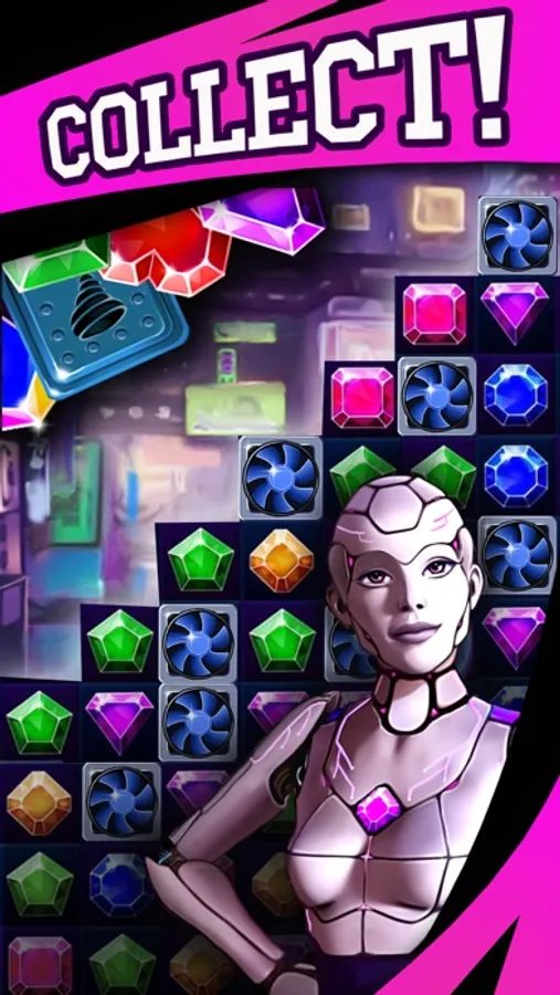 Welcome to the world of the future! An unusual and colorful world awaits you in a new match-3 game! Immerse yourself in the atmosphere of endless entertainment, joyful puzzles and enchanting victories. Combine shining crystals in order to receive rewards and boosters, as well as to open a mysterious cyber world.