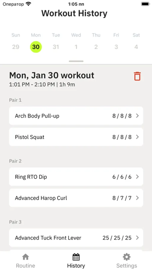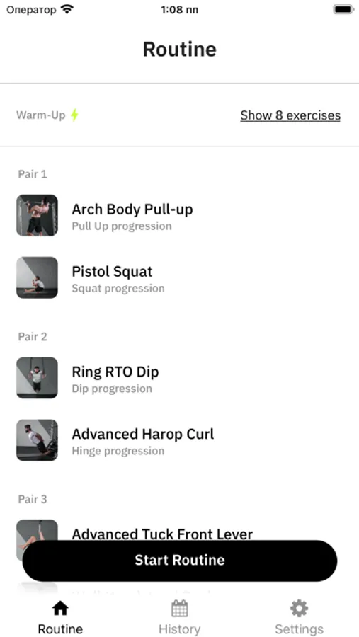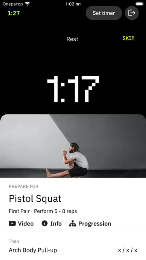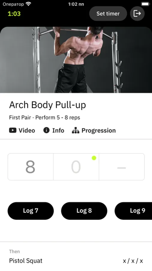 8x3 guides you through the workout by managing your rest time and exercise transitions. You always know which exercise comes next, when it's time to approach it and what is the goal for this approach. So you can fully focus on your technique and performance.