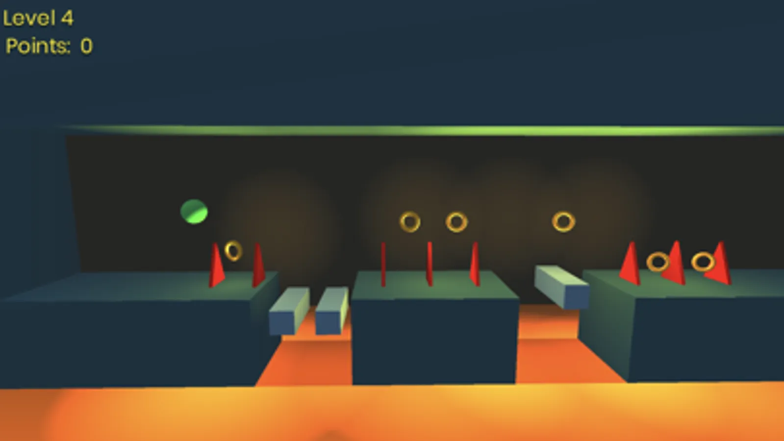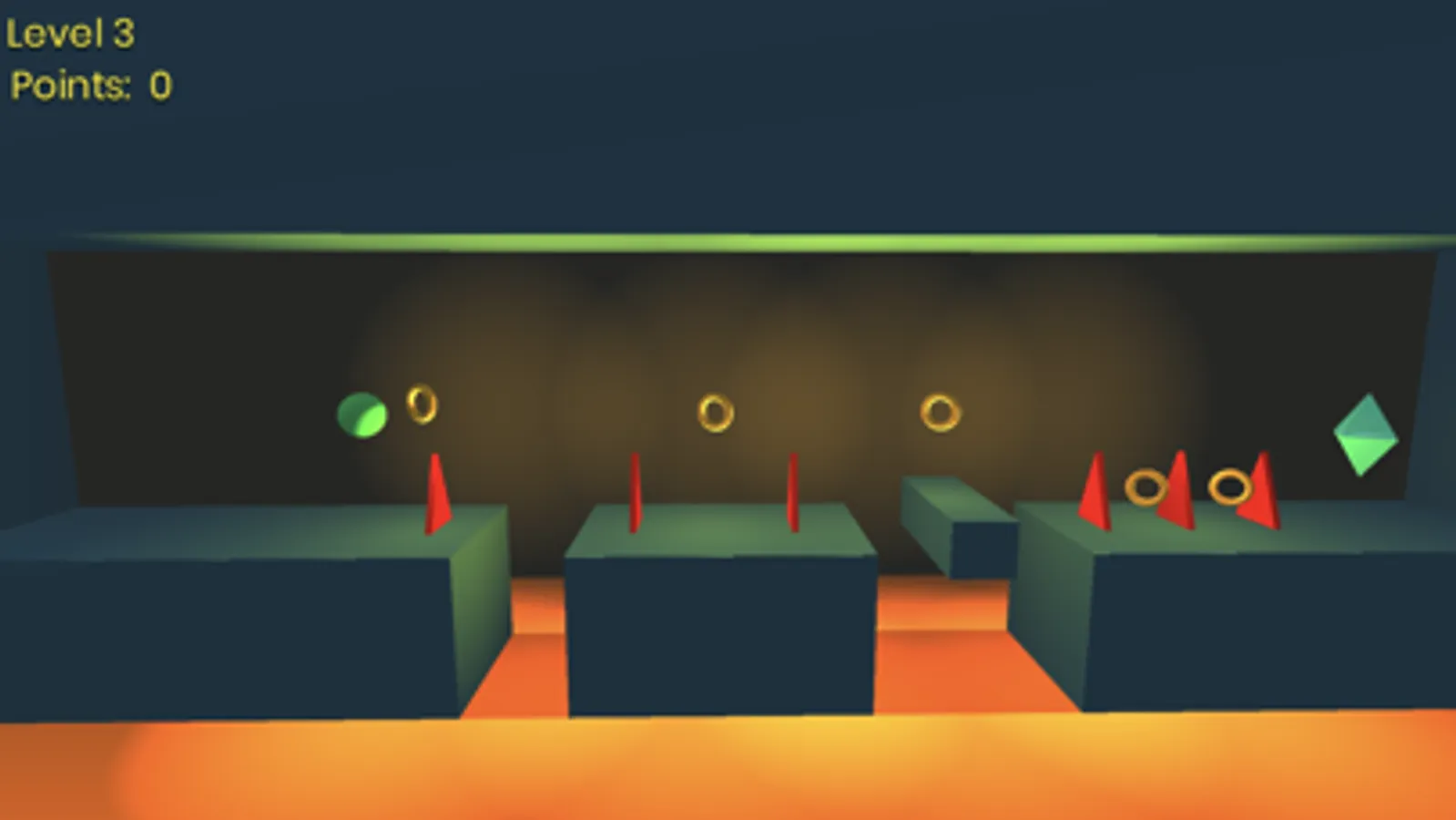Bounce Park is a single player game in which the user must pass a series of obstacles ranging from obstacles as simple as spikes to obstacles as dangerous and complex as a rolling tower of spikes or a moving plank. The user must pass these obstacles to reach the end of the level which is determined when the user comes in contact with the diamond at the end of the level. As the game progresses the difficulty level of the game increases.