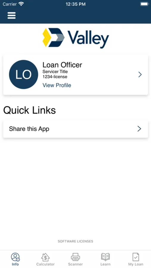 • Easily access contact information for your Valley Loan Officer and real estate agent and share this information with your family and friends.