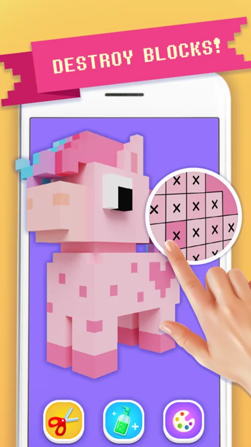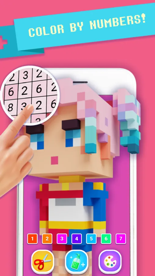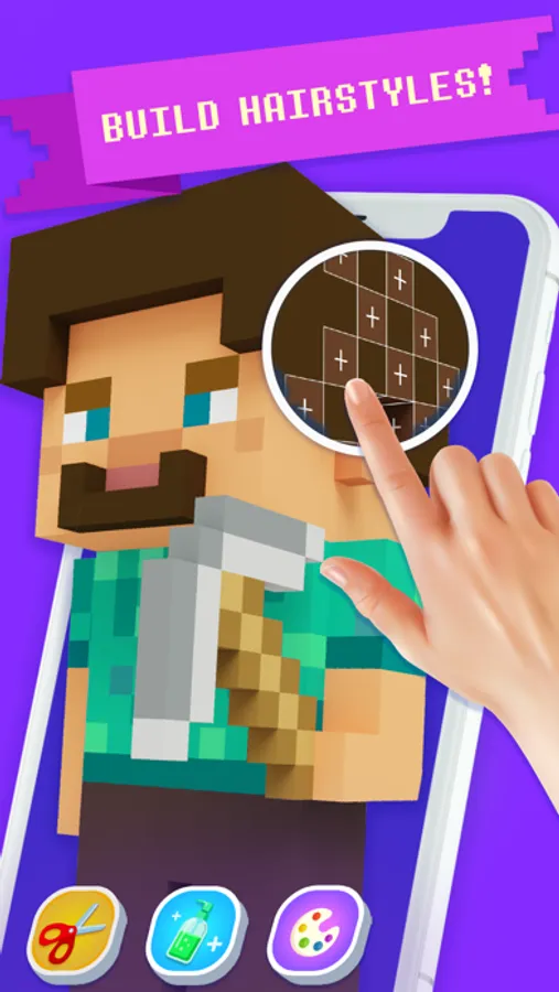 Add and destroy blocks, paint by numbers to build the best hairstyle in the block world.