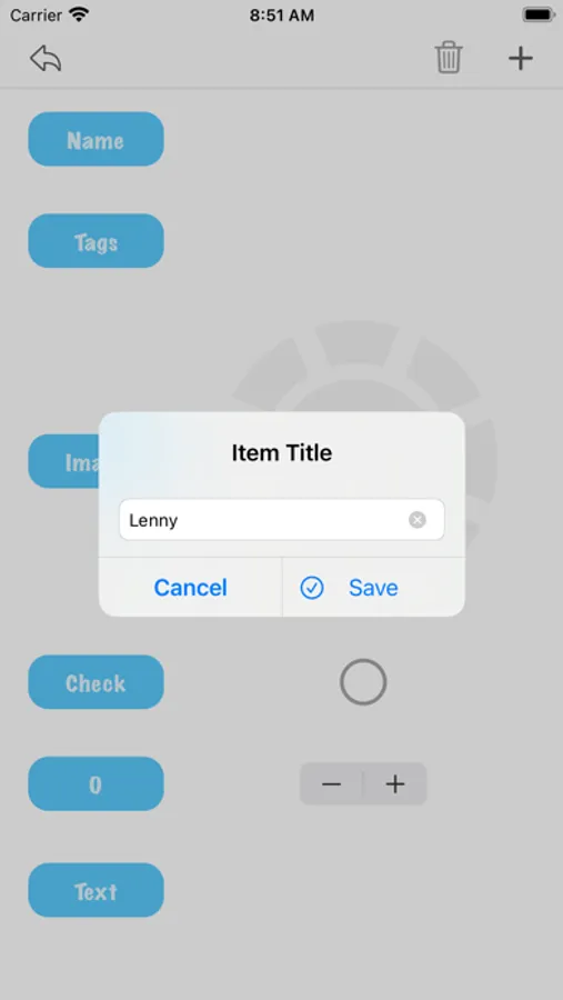 Name, List of Tags, Image or GIF, Checked or Unchecked, Count Number, Free text