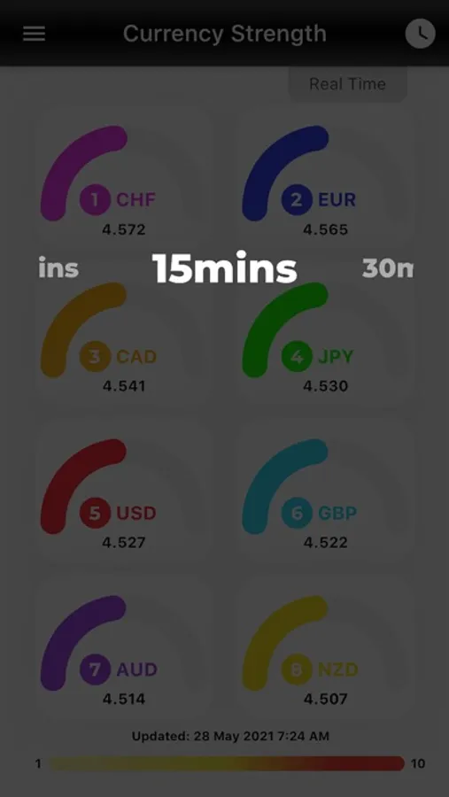 When most traders identify a trading opportunity, they usually look at a currency pair in isolation. For example, if a trader goes long on USD/JPY, they often just conclude that the dollar will appreciate against the yen but do not consider the bigger picture of dollar strengthening in general. Our forex currency strength meter app allows you to monitor the real-time strength of eight major currencies to help confirm trade setups.