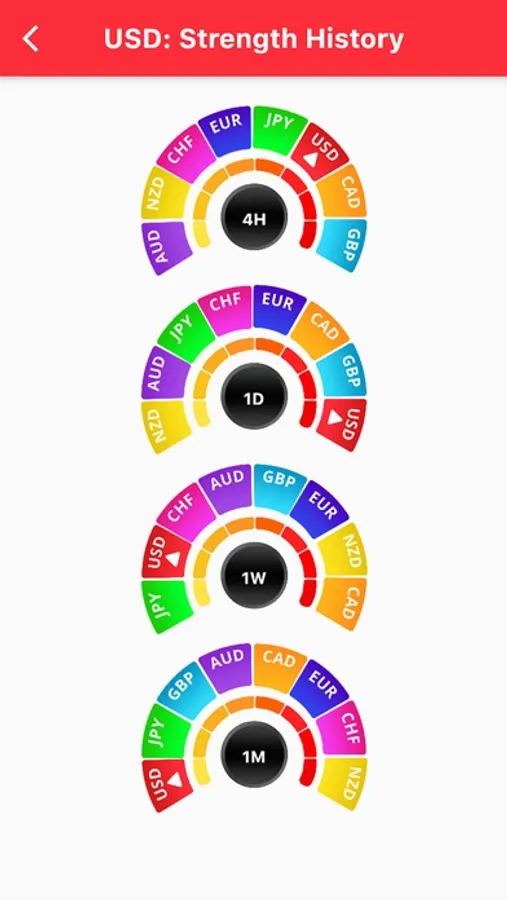 The most powerful forex currency strength meter app for keeping you up-to-date with changes in strength dynamic of the forex market covering the most important currencies. Launch the app and be immediately aware of the current market situation with a single glance of the currency strength meter app.