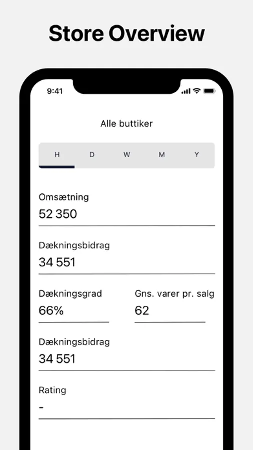 The overview can be on an hourly, daily, weekly, monthly, or annually basis. It is also possible to see how the individual shops rank on the given numbers according to one another.