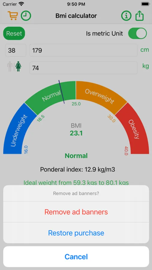 - Provide the ideal weight base on your height.