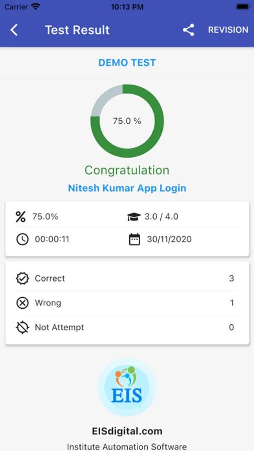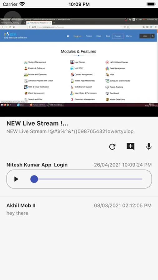 EISdigital a SaaS based institute management ERP software, the core features in software are Online Classes, LMS, Student Management. The EISdigital software comes with associated mobile app to use the same functionality as web application offers.