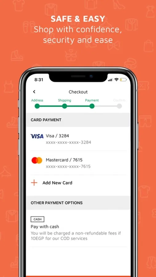 Shop quickly and easily by saving your preferred payment method and checking out faster. Payment methods work around you, and include card payments online or even an option for cash-on-delivery.