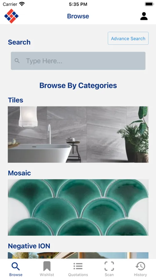 * TILE BROWSING, browse through our tile categories curated for different settings, and know their characteristic with the information provided.