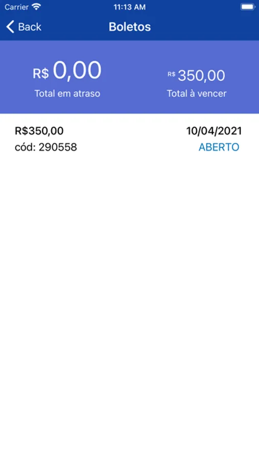 Financeiro: Visualizado dos boletos e pagamentos.