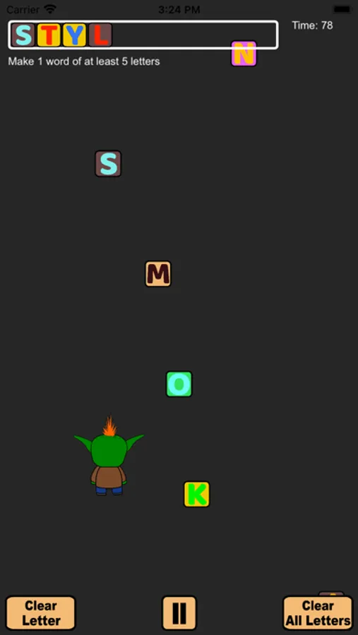 Like video games? Like word games? Word Goblin combines the best of both worlds. Help your Word Goblin eat letters to make words and complete levels. Earn game coins along the way. It is fun and challenging for all ages. Levels start with falling letters that you collect to spell words to achieve the level's goal such as make a five letter word. As you gain levels, the goals become more challenging and the letters fall faster. You will have to watch out for falling rocks, ghosts, mummies and more! Don't worry. You can use your game coins to buy shields and other power ups to help get you past hard levels. Try it now! It's free to play.