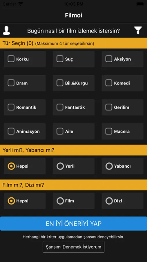 Filmoi is an app that recommending movies and TV shows that have received full marks from the authorities according to the filters you choose.