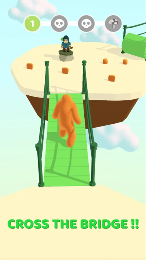 Collect part of bodies, be giant, make circle and kill enemies. Bridges will show a way to your home.