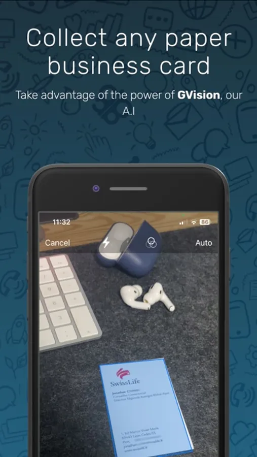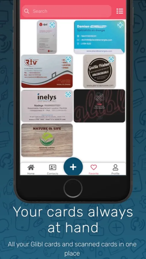 - Scan paper business cards to integrate them into your Glibl digital card holder.