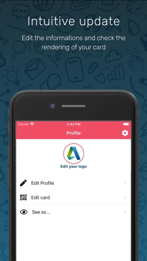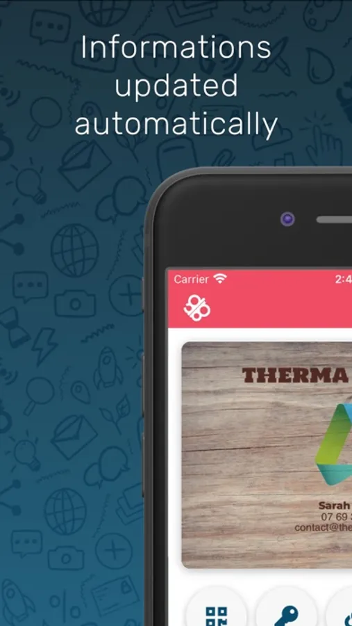 - Create in a few moments your 100% digital business card with all your information (logo, contact details, social networks, …)