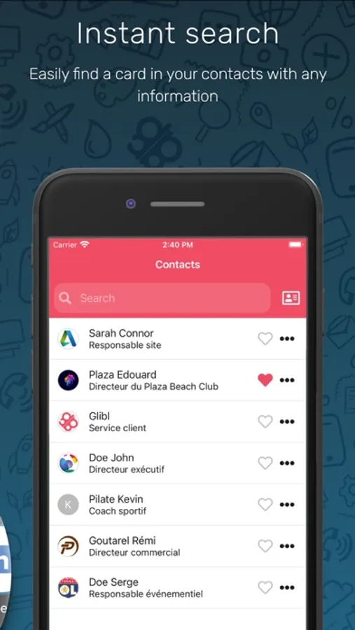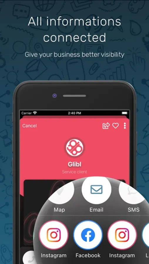 o Thanks to the application (with or without an account), your interlocutor will be able to create its own card and benefit from all the power of Glibl.