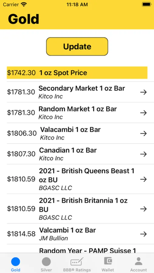 Bullionaire is a data mining application that will help you find the most reasonably priced metals being sold online. The app scans a catalog of websites and delivers a consolidated list of their posted prices. When you decide on your purchase, the app links you to the online dealer to complete your order.