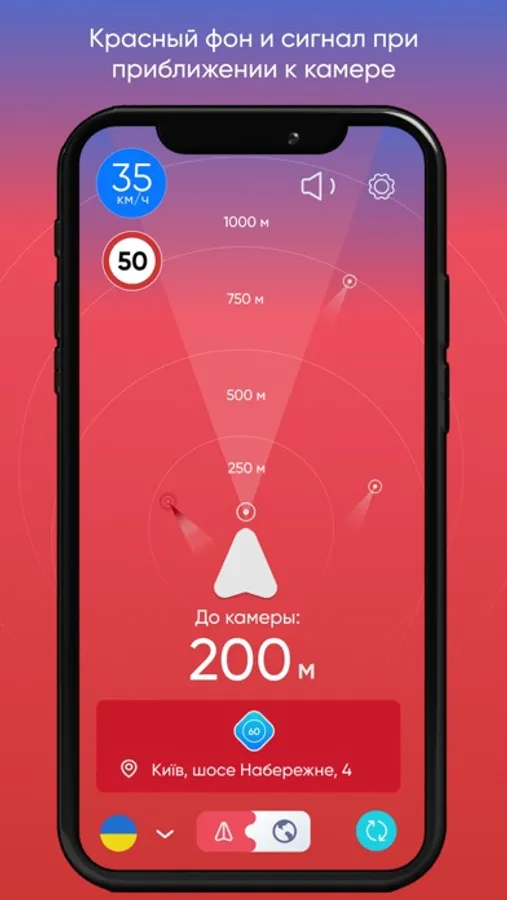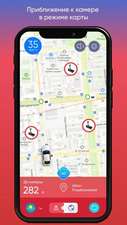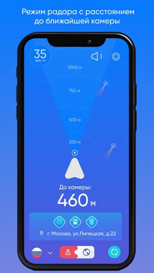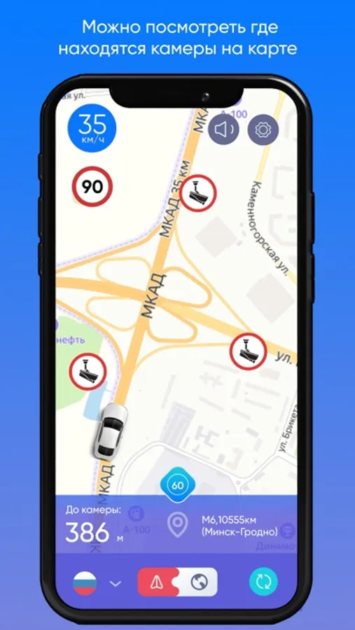 Режим Радара и Карты Антирадара предупредит Вас о тысячах камер на дорогах и избавит от штрафов, если впереди есть камера.