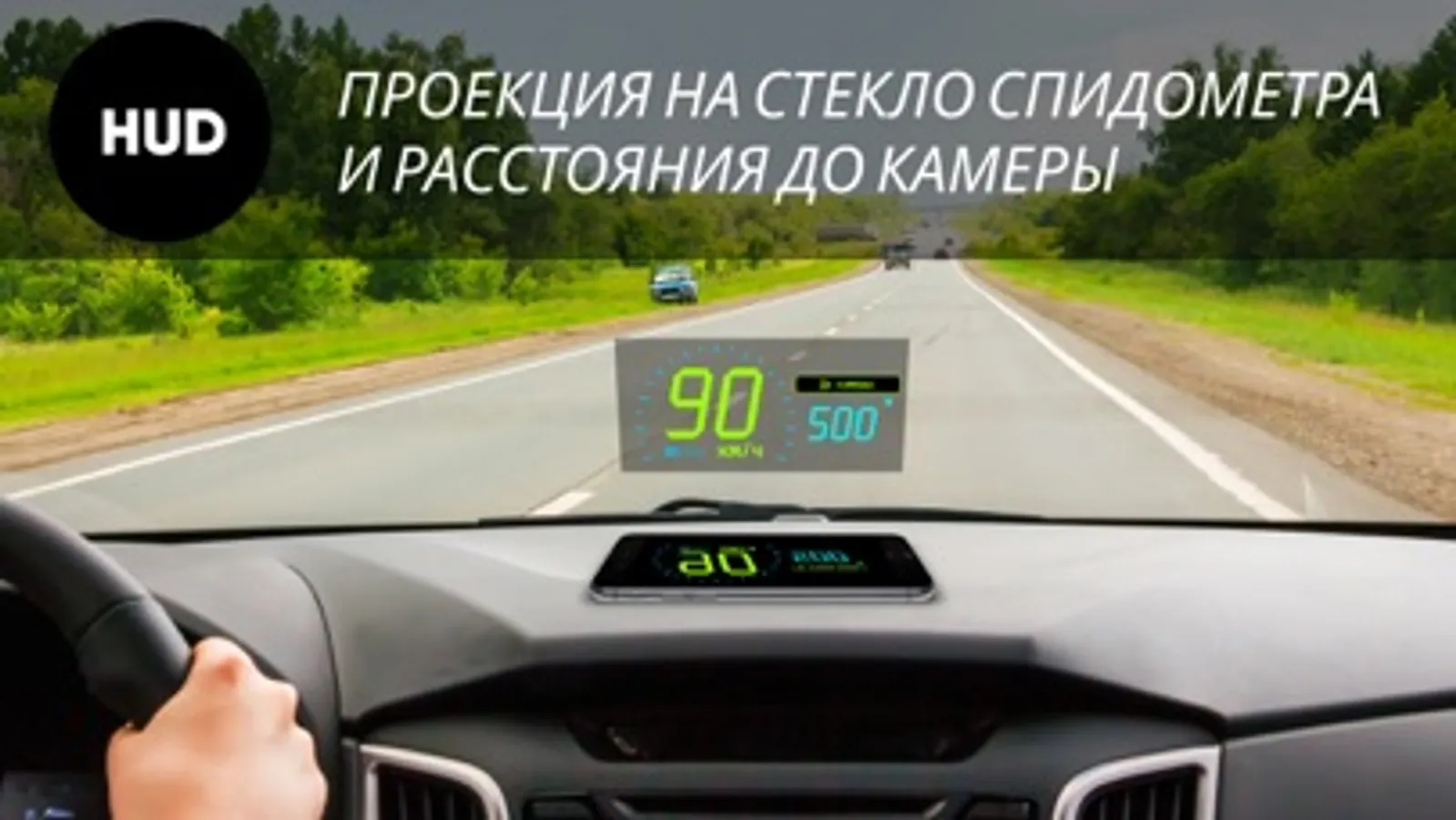 HUD (Head-up Display) - проекция на лобовое стекло спидометра и расстояния до камер фотовидеофиксации, очень удобно использовать в вечернее и темное время суток.