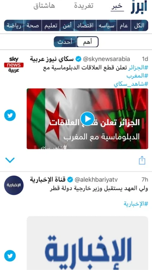 * أخضر: متوسط (حسب عدد الحسابات الموثقة التي تتابعه)