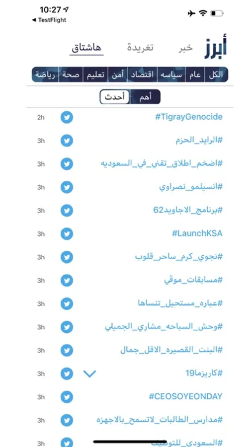 - تصنيف التغريدات حسب موضوعها إلى: عام، سياسه، اقتصاد، أمن، تعليم، صحة، رياضه.