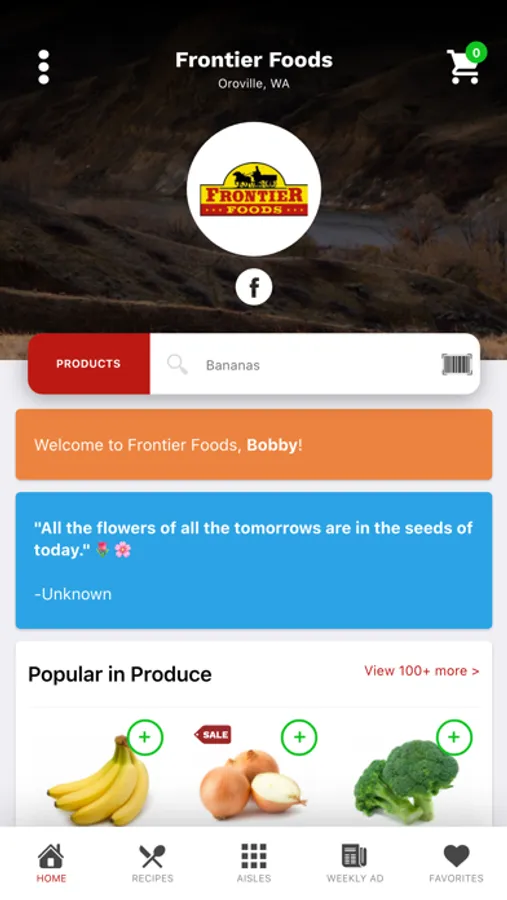 Order your groceries from Frontier Foods on the go on your mobile device or from your iPad on your couch. Our award-winning grocery app makes grocery shopping a breeze with quick access to our weekly circular, an easy-to-use product search, detailed product details and labeling, tasty recipes, and family meal planning tools. What could be better than that?