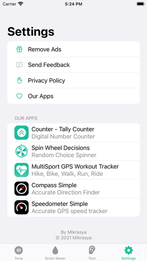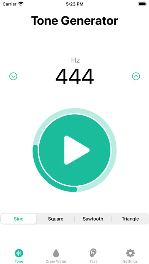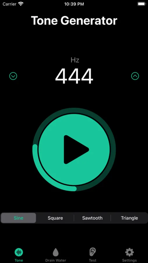 Tone Generator generates sine, square, sawtooth and triangle tone at a large frequency range. Frequency of the tones can be adjusted by swiping up or down on the screen.