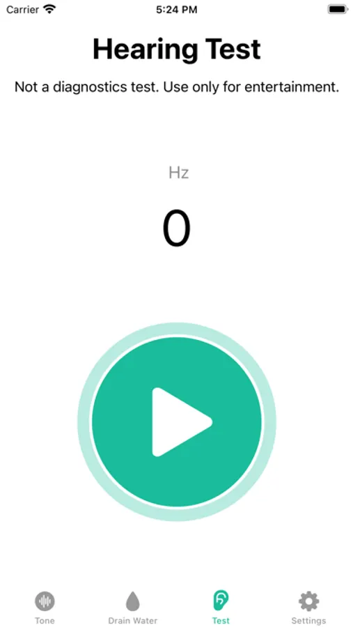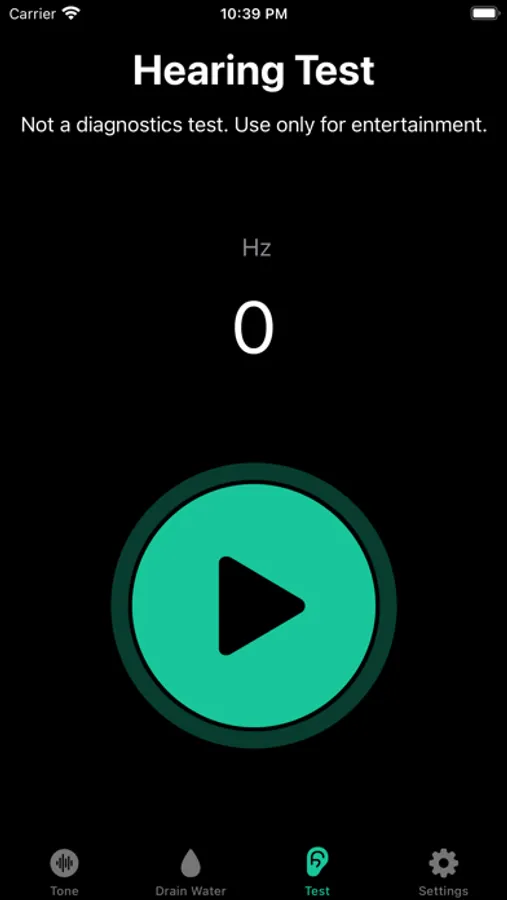 Tone Generator has a built-in feature to quickly sweep frequency of a sine tone to test your hearing. This feature is purely for fun and should not be used for any diagnostics.