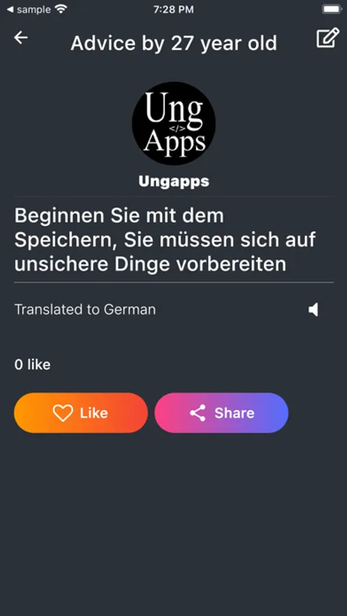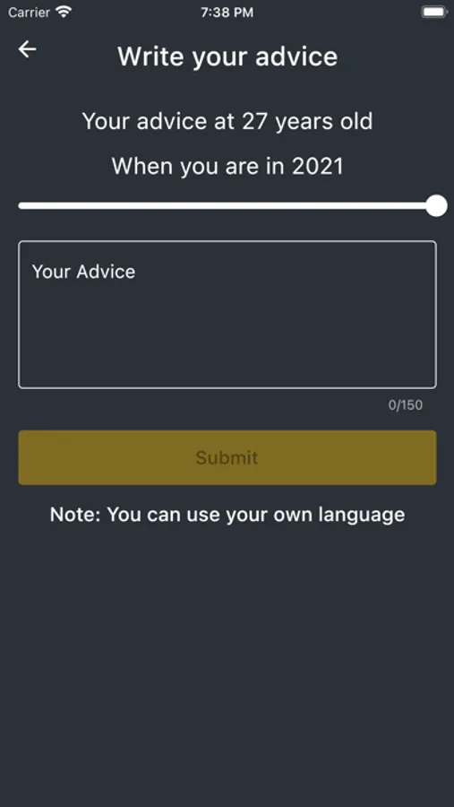 If you love to share your advices with others any ages. You can do it in this app. You can create advice from specific age from 13 to 80 ages. It can be translated into your language as well and there's feature text to speech your advice so don't worry about the limitation.