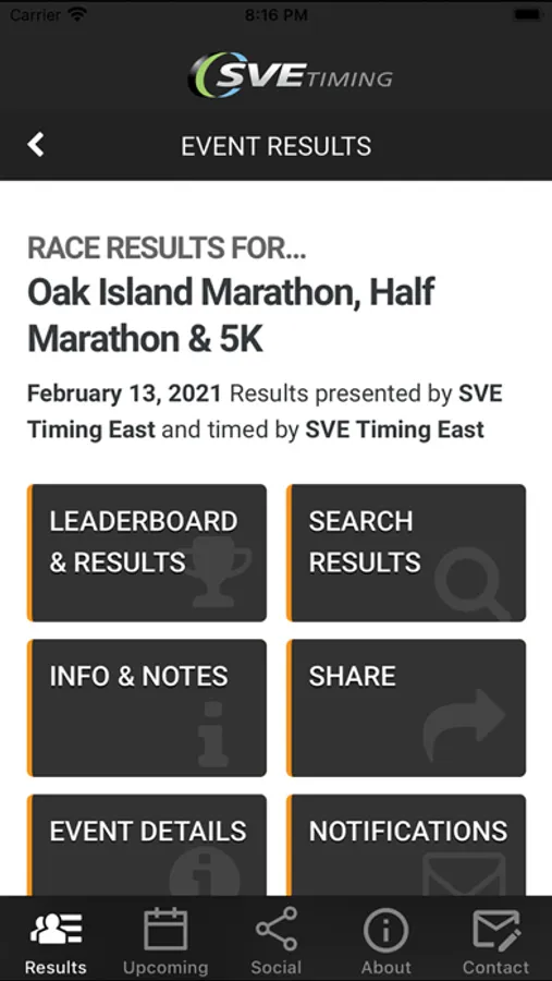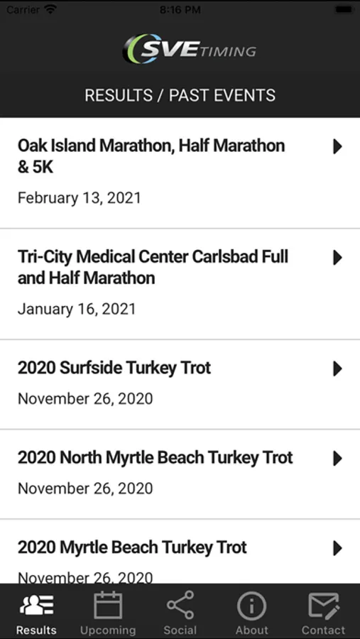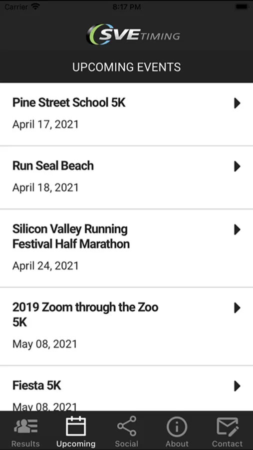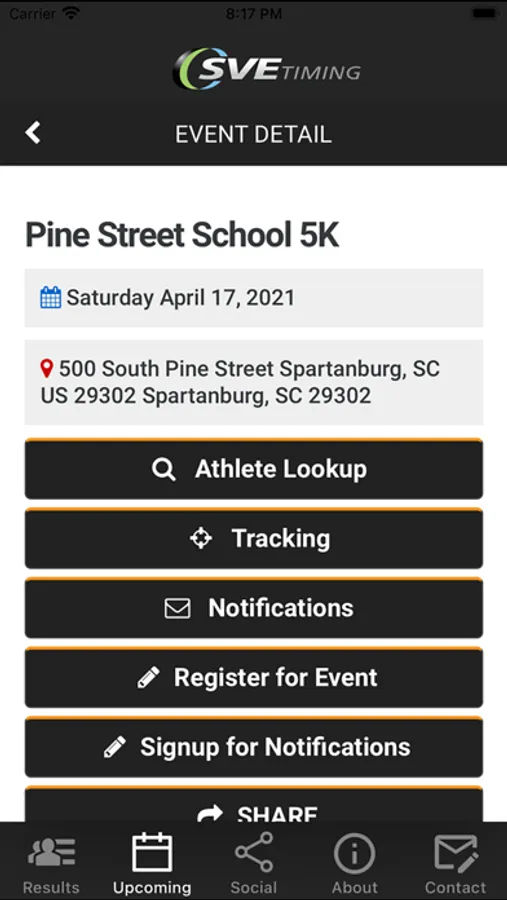 SVETiming Event App. A helpful tool for event schedules and news, visitor guides, athlete tracking and results, rprovide services before, during, and post-event which include online registration, bib/packet preparation, and packet pickup, to results lookup and live athlete tracking.egistration, course maps and FAQs.