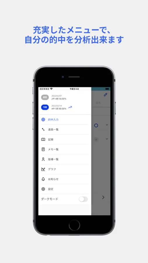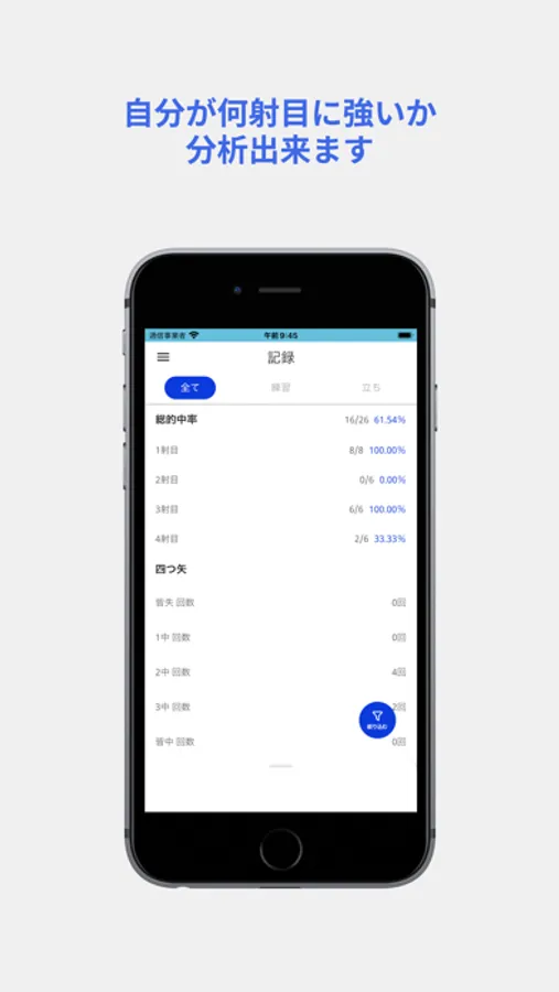 練習、立ち毎での記録、道具毎の的中結果閲覧を追加し、前作より便利になりました。