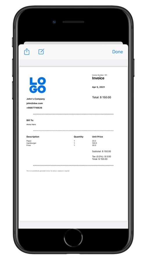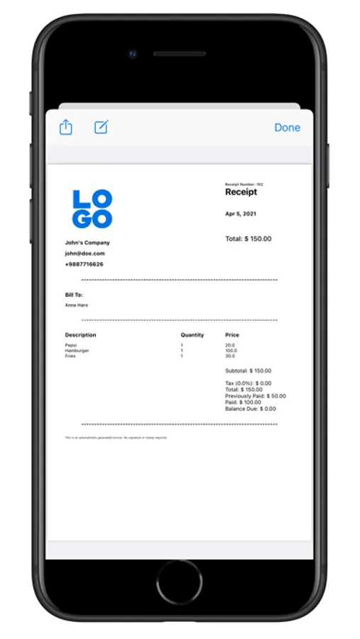 1) Create Invoices and Receipts and Quotations with just a few taps.