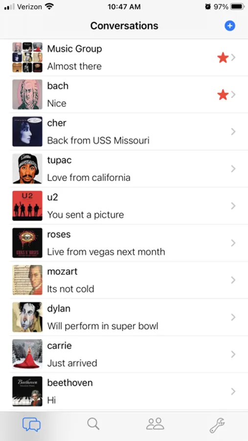 Simply listing your top 5 favorite songs, you will then be able to discover (and be discovered by) people with similar listening habbit. From there, you can chat (by text, image, voice, video), get to know more music and make friends with each other.