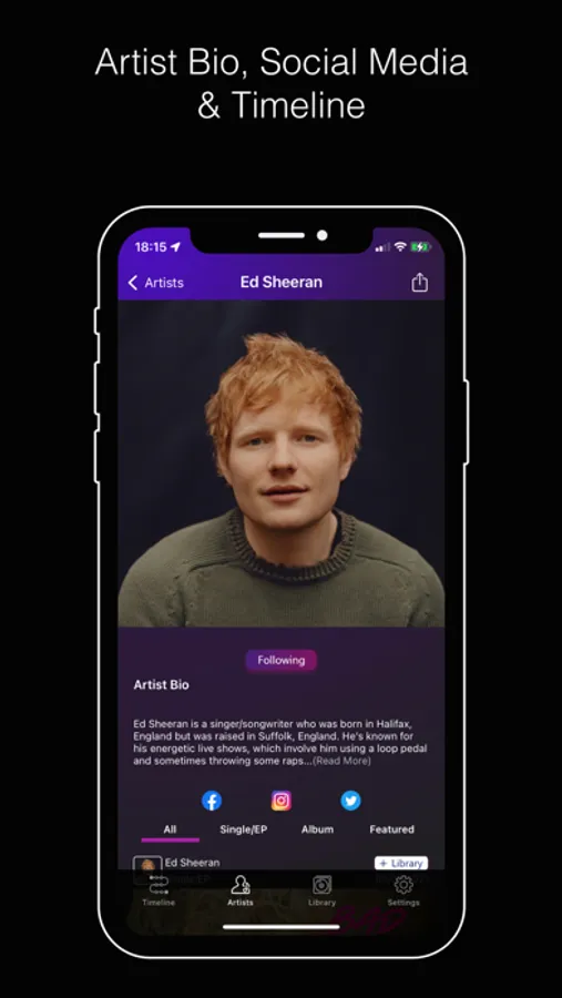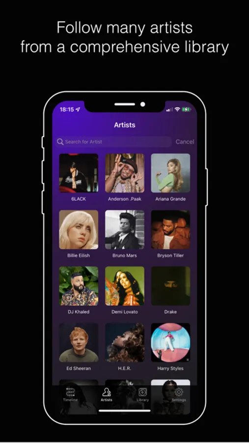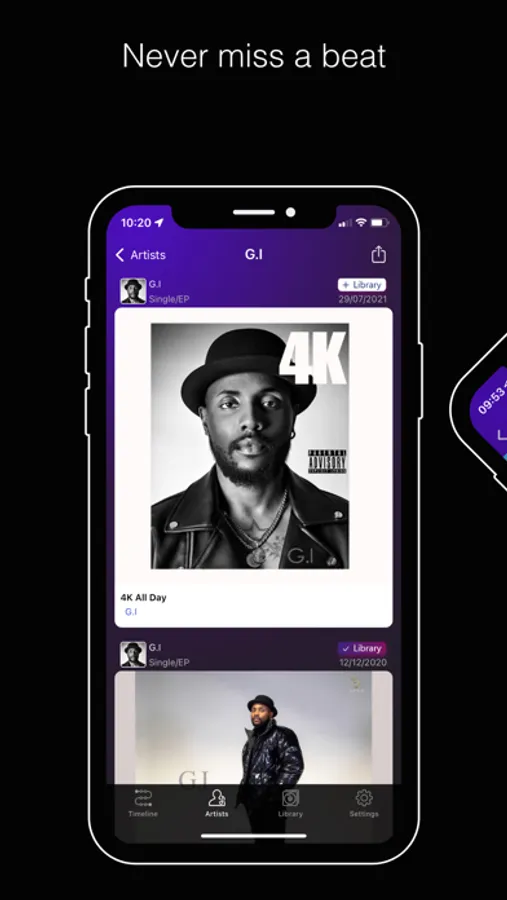 Find and follow your favourite artists! For all music lovers, you can view an artist’s discography or scroll through and view new releases on your selected artists timeline. The timeline will give you a complete overview of song and album releases from everyone you follow, starting from the latest releases.