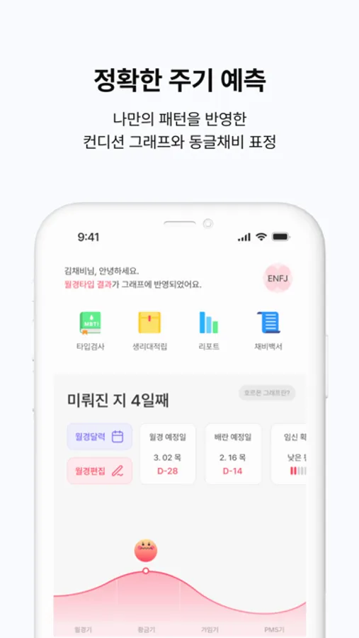 내 몸에 가장 정확한 생리주기 예측은 기본!