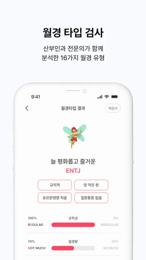 주기별 리포트, 데일리 증상기록, 루틴관리, 제품체험까지.