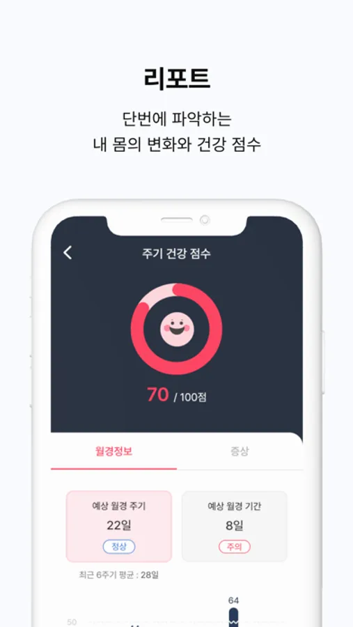 내 몸에 맞춰 변화하는 그래프로 다가오는 월경은 물론, 오늘 내 상태까지 확인해요!