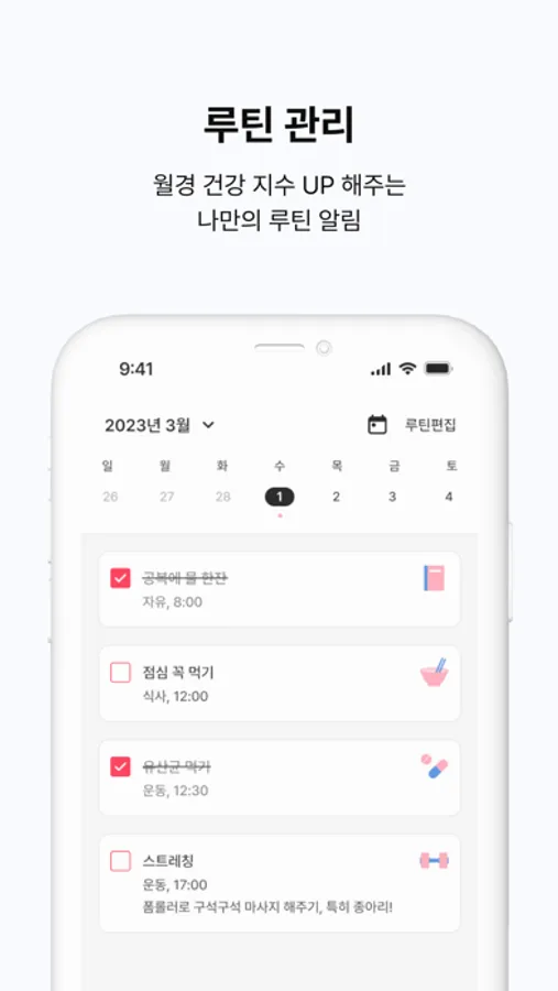 루틴 등록을 통해 내 월경타입에 맞는 습관을 형성해요.