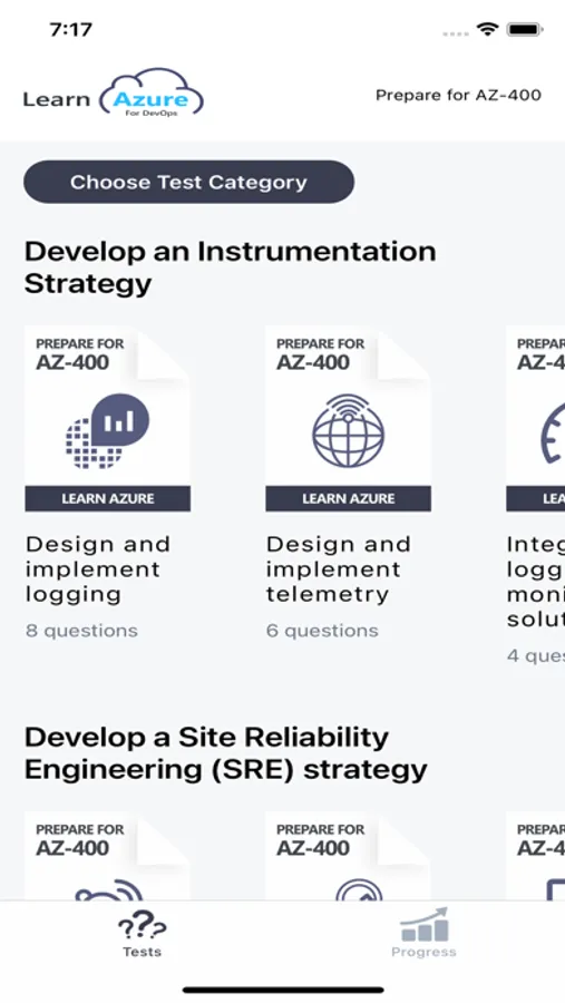 Learn Azure for DevOps is an app which helps you to learn DevOps for Microsoft Azure by answering questions in tests.