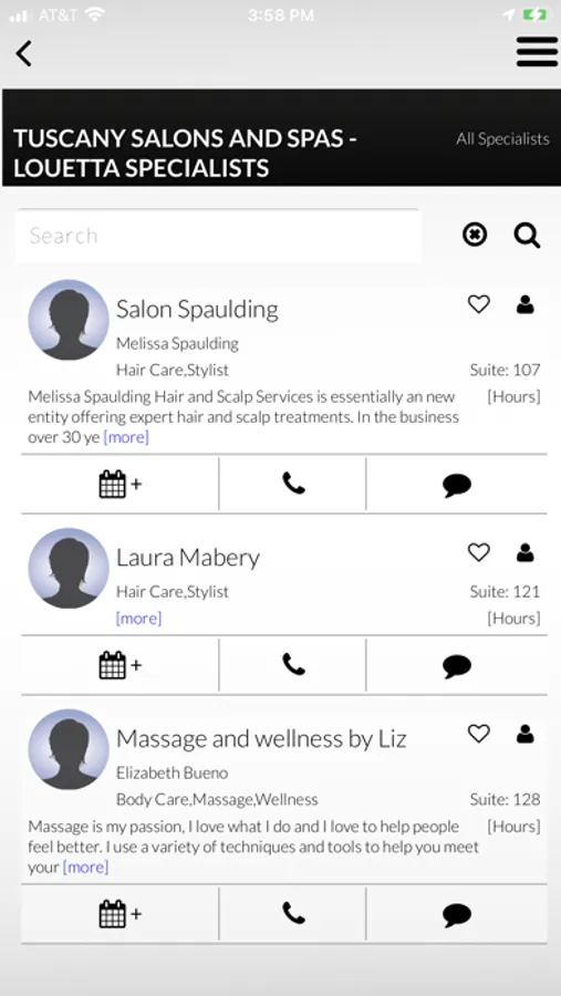 The Tuscany Salons and Spas mobile app is for clients of tenant businesses to book appointments, communicate, confirm and pay for hair, nail, and massage services provided by the business owners that reside in a location.