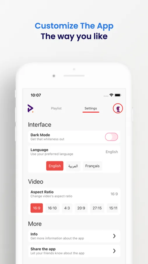 - Language set to default language, however users can switch between 3 languages without changing device language setting
