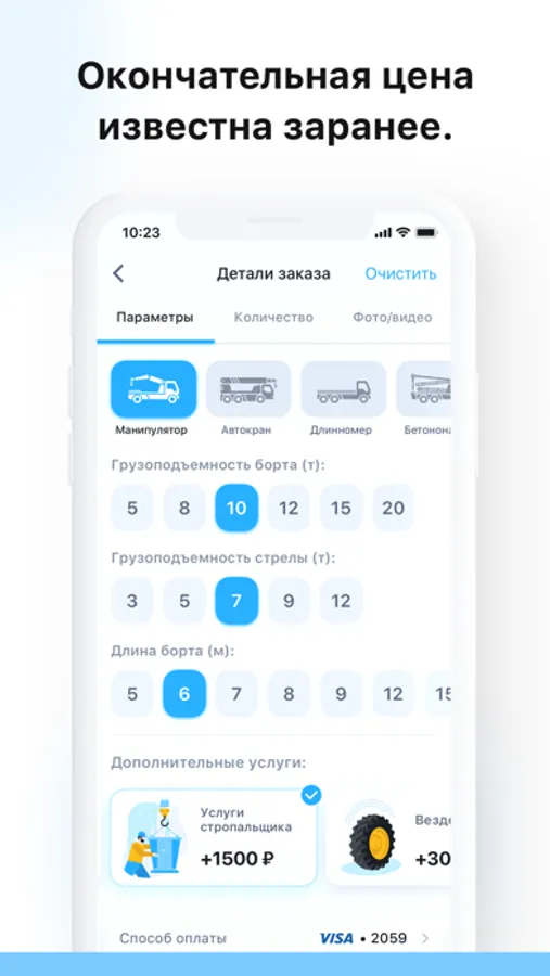 Окончательная стоимость аренды или перевозки известна заранее, до оформления заказа —