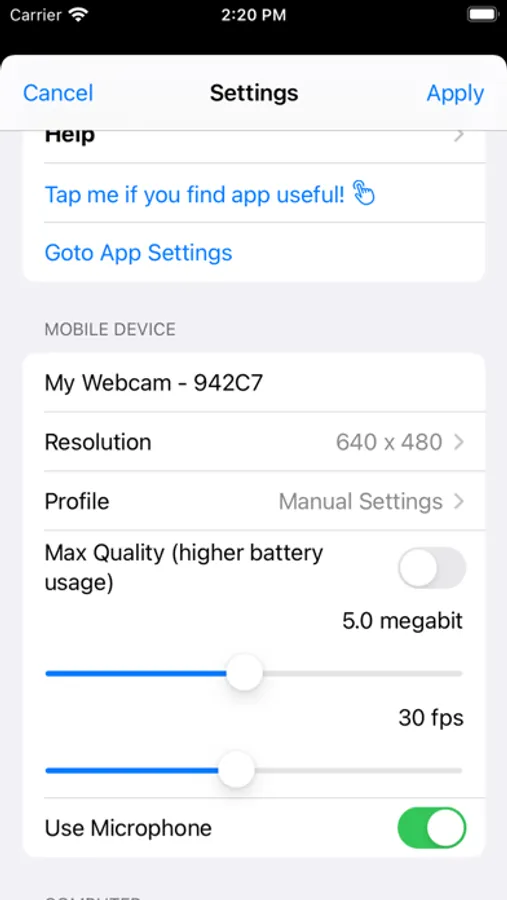 Vector Webcam turns your mobile device into a virtual Webcam and Microphone for your Windows software, via wireless network or USB. Don't buy expensive webcam hardware that could produce poor quality video. Instead, use your phone or tablet for online meetings, streaming, and other video capture software.