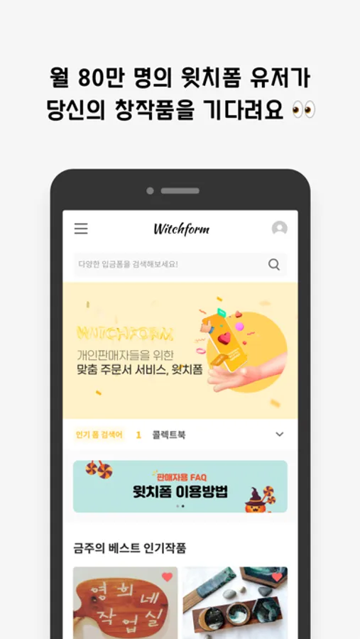 우리끼리 사고파는 창작 마켓 윗치폼은 현재 월 250만 유저가 이용하고 있어요.