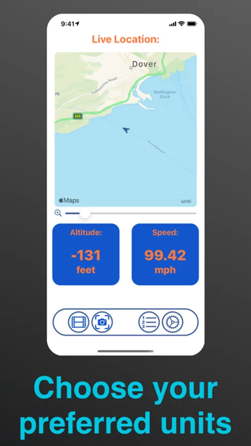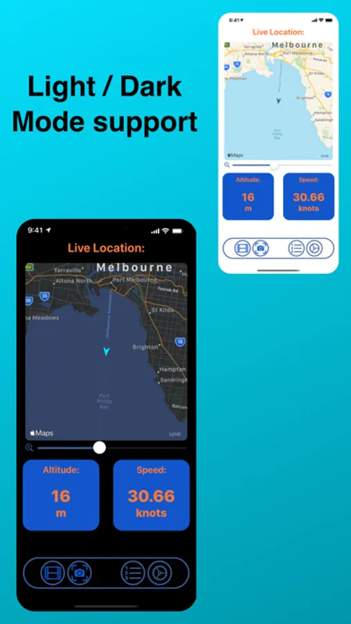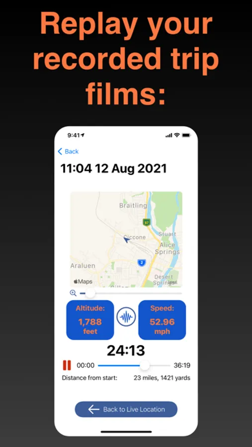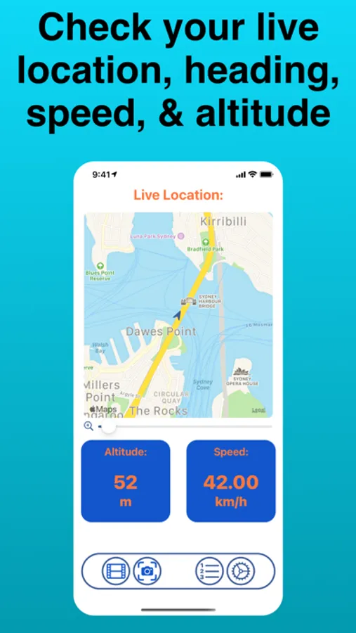 1. View your current live location on the map, together with your heading, speed, and altitude. These figures are based on your device's GPS readings.