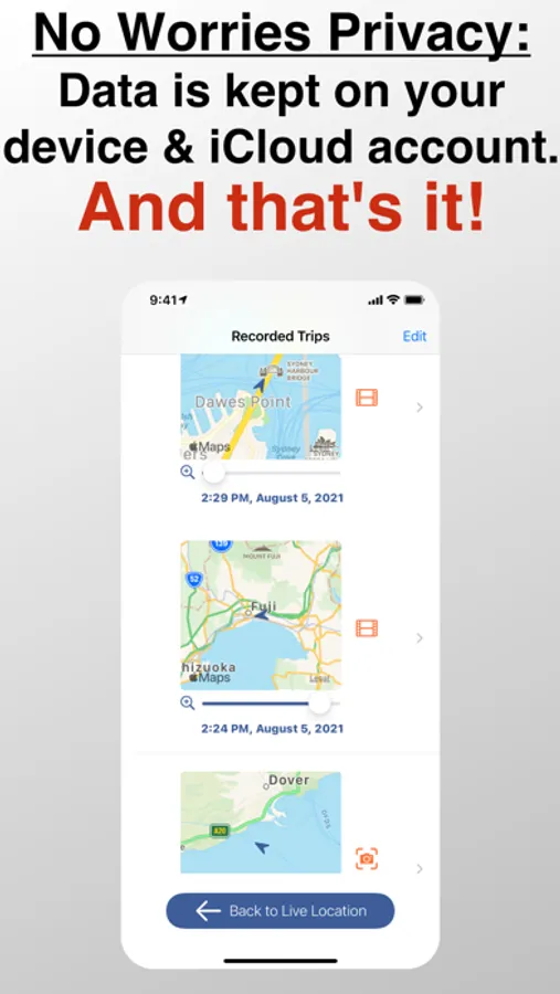 7. Your trip films and snapshots are saved to your device as well as your personal iCloud account, where they are backed up and synchronised across your devices.