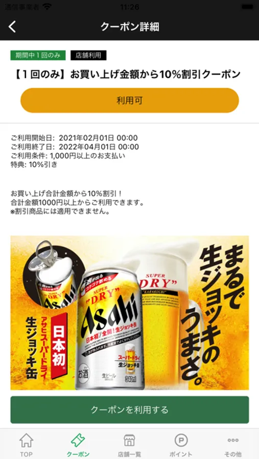 お得なクーポンやお知らせ情報をプッシュ通知として受け取ることで、